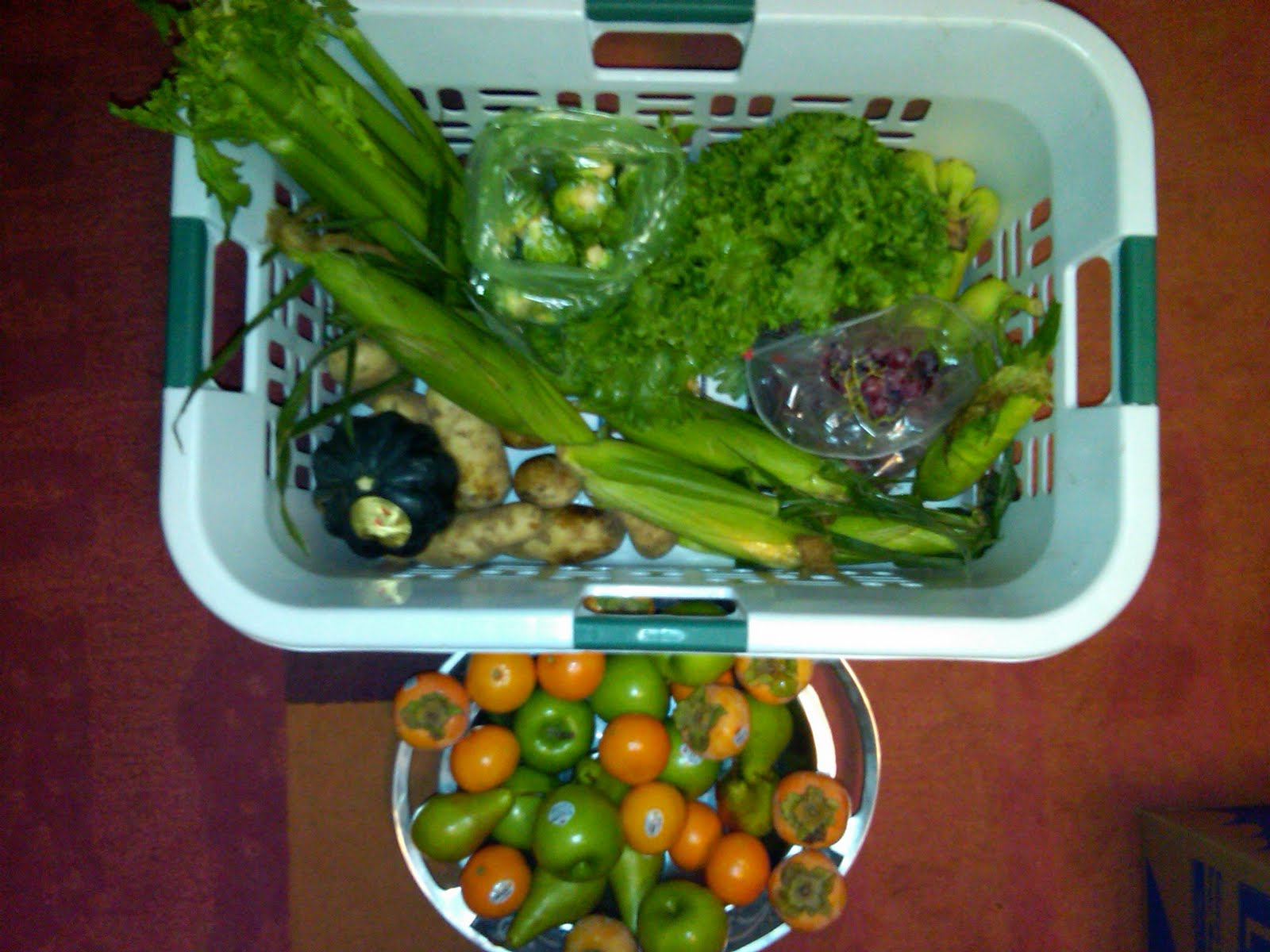 If you've been following along on my blog so far, you've seen me mention items in my basket in probably every post. I've been posting the inventory and a photo each week on Facebook, but now that I've started this blog, I thought I'd do it here, as well. It is, after all, the reason for a lot of the recipes I come up with (for better or worse). So in case you've somehow missed my whole weekly basket routine -- now you'll know just what I'm talking about!